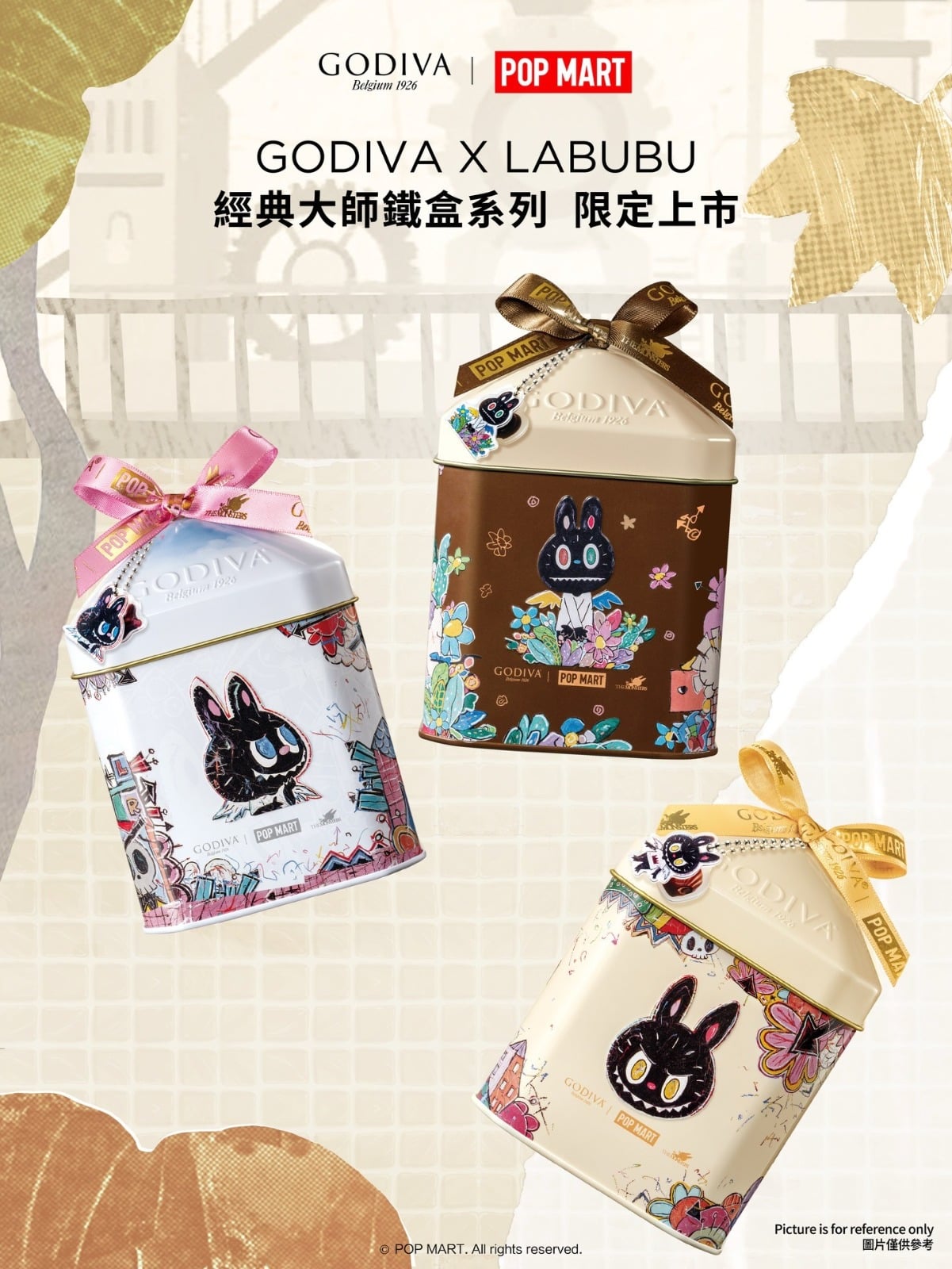 $288盒3桶共30入。2桶起$278桶。GODIVA X LABUBU 經典大師巧克力鐵盒 (一盒3入)