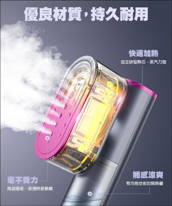 👍30秒快速加熱,配合水蒸氣噴霧,輕鬆為衣物去皺