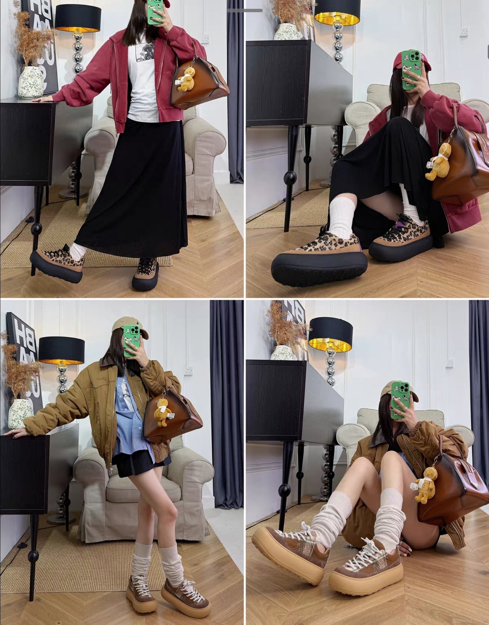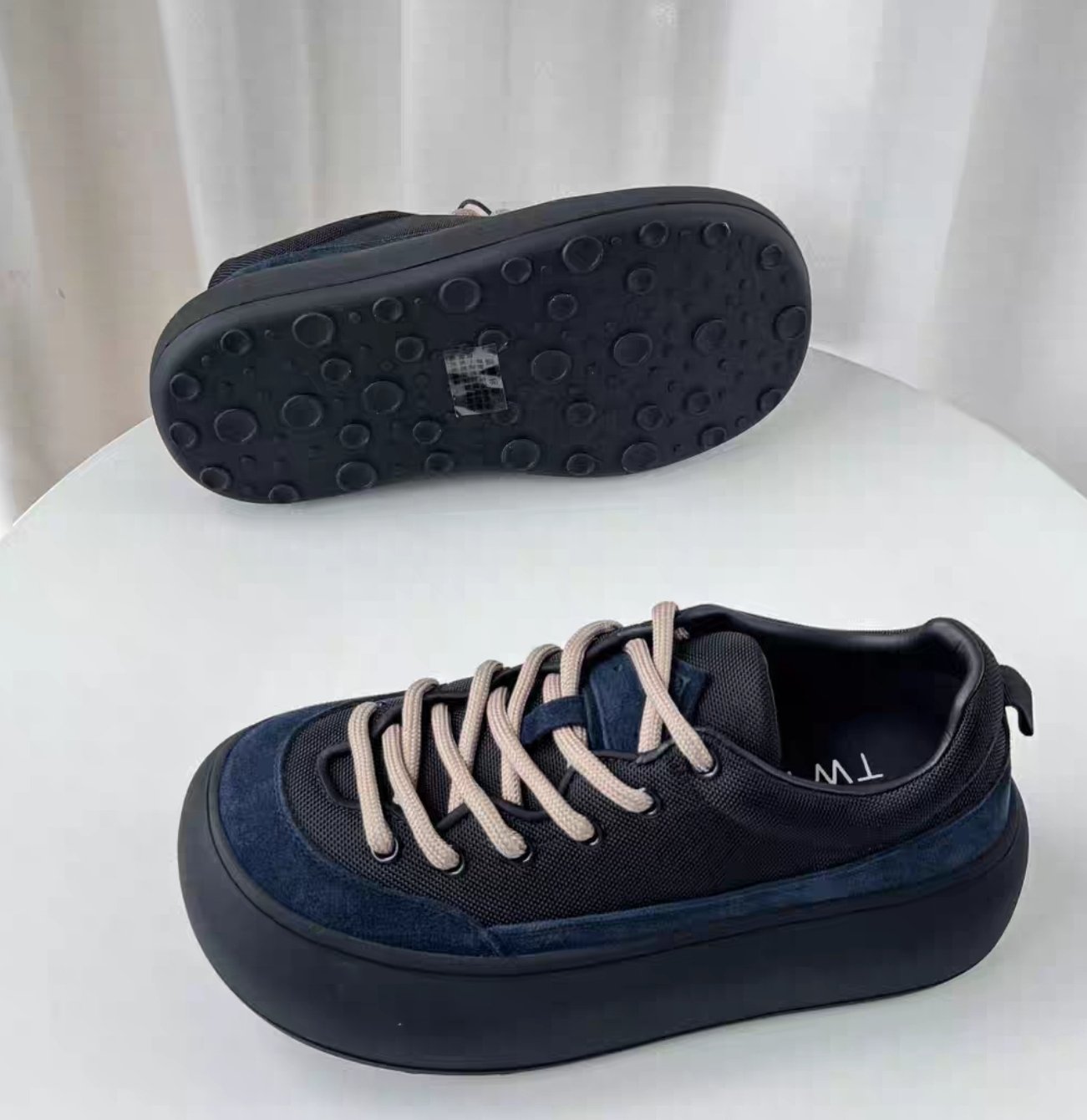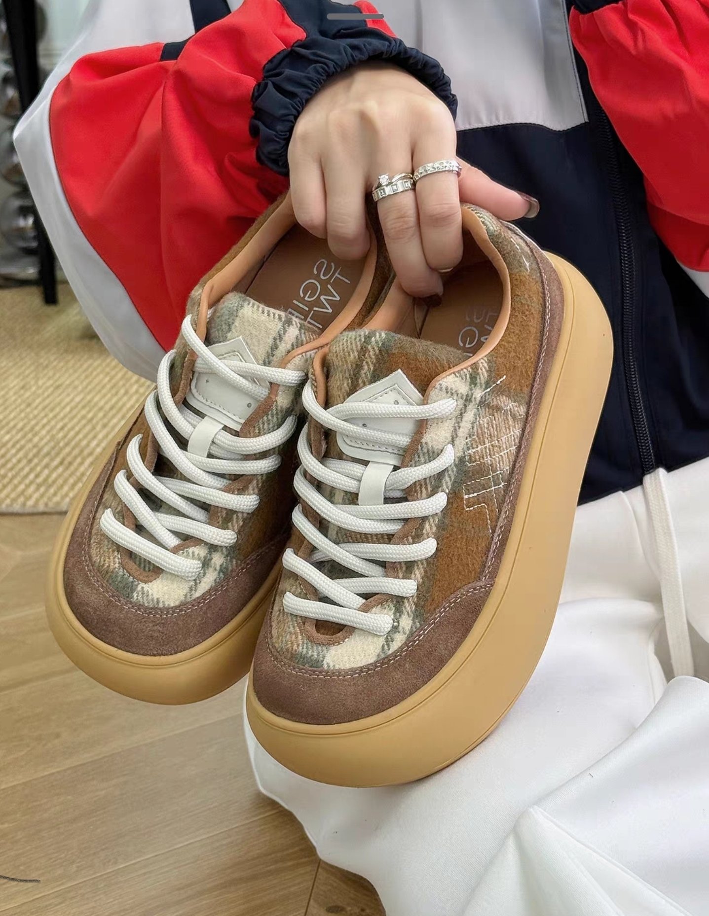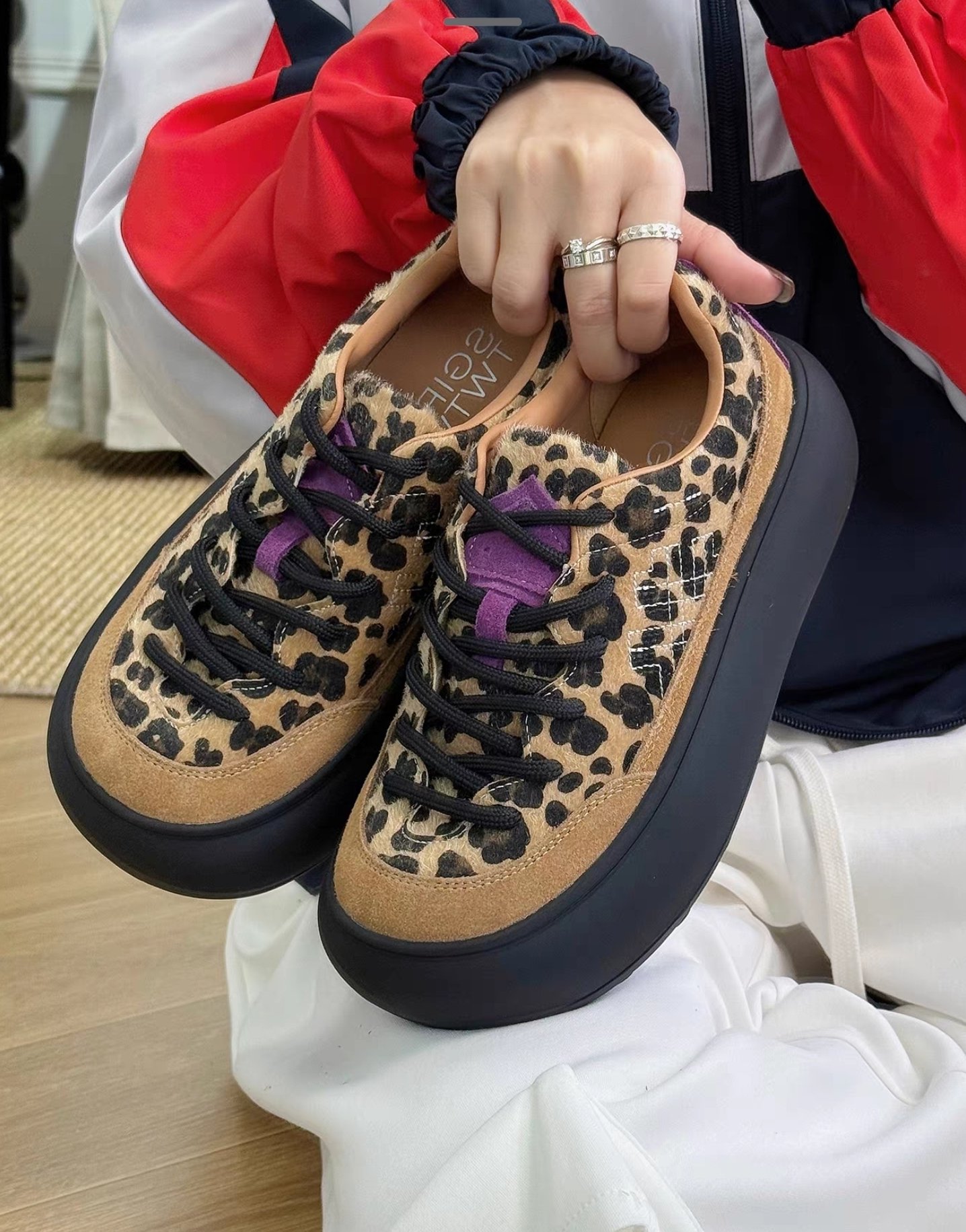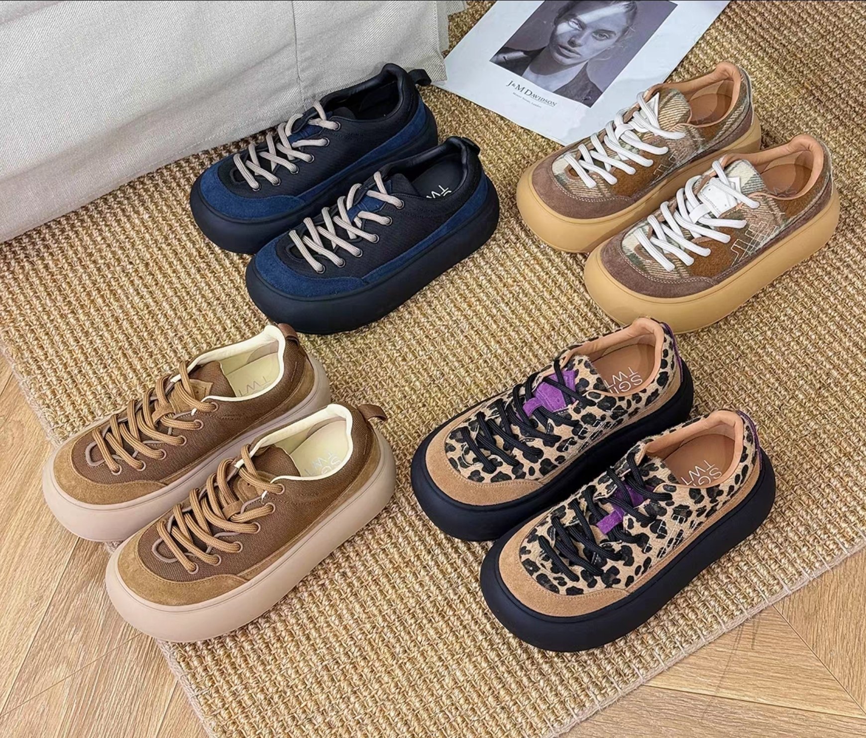 $320對。 【秋冬厚底休閒鞋|韓系復古增高款】 ✨時尚亮點: 這款厚底鞋採用簡約圓潤鞋型+5cm厚底設計,瞬間拉長腿部比例💃🏻,視覺增高又顯瘦。整體復古俐落風格,無論搭配裙裝或休閒褲都非常百搭! 👟材質說明: 鞋面: 絨布+織布拼接,質感柔和又耐磨 內裡: 透氣網紗,穿著不悶熱 鞋底: 高彈橡膠底,圓圈防滑紋路設計,穩固防滑 鞋高: 約5cm 厚底增高設計 🎨可選顏色: 1. 🐆 豹紋款(紫色鞋舌點綴) 2. ☕️ 淺啡拼接 3. 🫐 深藍拼接 📏尺碼參考: 35 /225 36 /230 37 / 235 38 /240 39 /245 40 /250 👗穿搭建議: 配長裙+oversize外套 ➜ 慵懶韓風💋 配短褲+長襪 ➜ 元氣學院風🧦 配牛仔褲 ➜ 休閒日常感👖 📦 特點總結: ✅ 厚底增高顯瘦 ✅ 柔軟耐穿不磨腳 ✅ 百搭三色,秋冬必收款