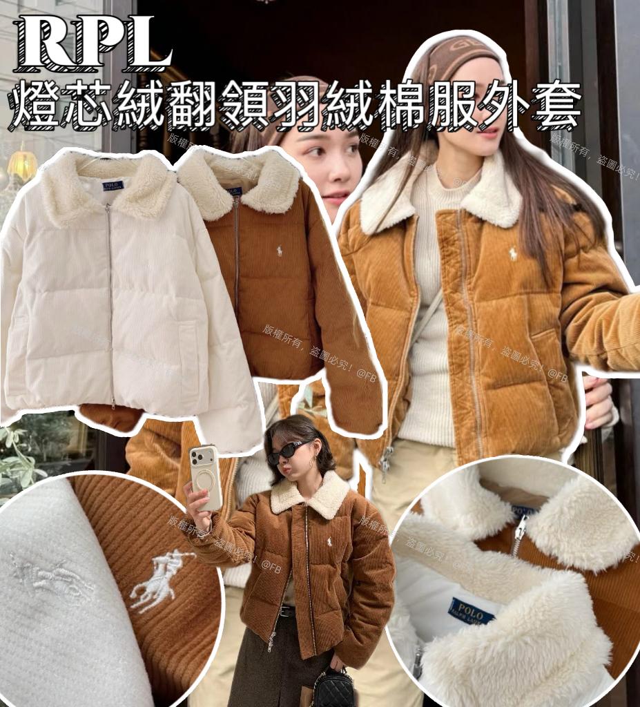 22/11 1月底 $350件。 RPL 燈芯絨翻領羽絨棉服外套 🐑 羊羔毛領,溫暖舒適 ❄️ 🎨 燈芯絨材質,極具復古風格 🌟 🏷️ 小標刺繡,提升辨識度 😊 ✨ 乾淨溫柔,展現出鬆弛感十足的時尚美感 💖 🌈 顏色: A 白色 B 棕色 📐size (cm) : M : 肩寬52 胸圍122 衣長55 L : 肩寬53 胸圍126 衣長56 ⚠️ 聲明及注意事項 ⚠️ ⭕顏色或因拍攝器材或顯示螢幕等因素而與實物有異,以上圖片及文字僅供參考,一切以實物為準 ⭕外國進口貨品之貨期或受船運/空運延誤影響,恕不接受貨期延誤原因取消訂單,下單前敬請諒解 ⭕本店並沒有持有任何品牌之版權. 所有商標及版權均屬該品牌持有人, 圖片及資料轉載只作分享用途。商品圖檔顏色因電腦螢幕設定 差異會略有不同, 以實際商品顏色為準, 所有圖片只供參考 。 ⭕ 部份外國進口商品會附有中文標籤(繁體/簡體),以貨件到步為準。 ⭕本店屬代購角色,所有有關貨品之責任,例如品質、真偽等,本店將不會作出任何承擔或法律責任 ⭕客人一經落單後即對所有條款細節清楚明白及接受,管理員擁有最終決定權,本店屬代購角色,所有有關貨品之責任,本店將不會作出任何承擔或法律責任。 ==⚠️ 聲明 ⚠️== 1. 本貨品為平行進口 2. 聲明:所有帖文內容只作分享及參考用途。為免混淆視聽,所有商標或版權均屬有關商品品牌商標的持有人,敬請留意。 商品圖片顏色因電腦螢幕設定差異會有所不同,以實際商品顏色為準。