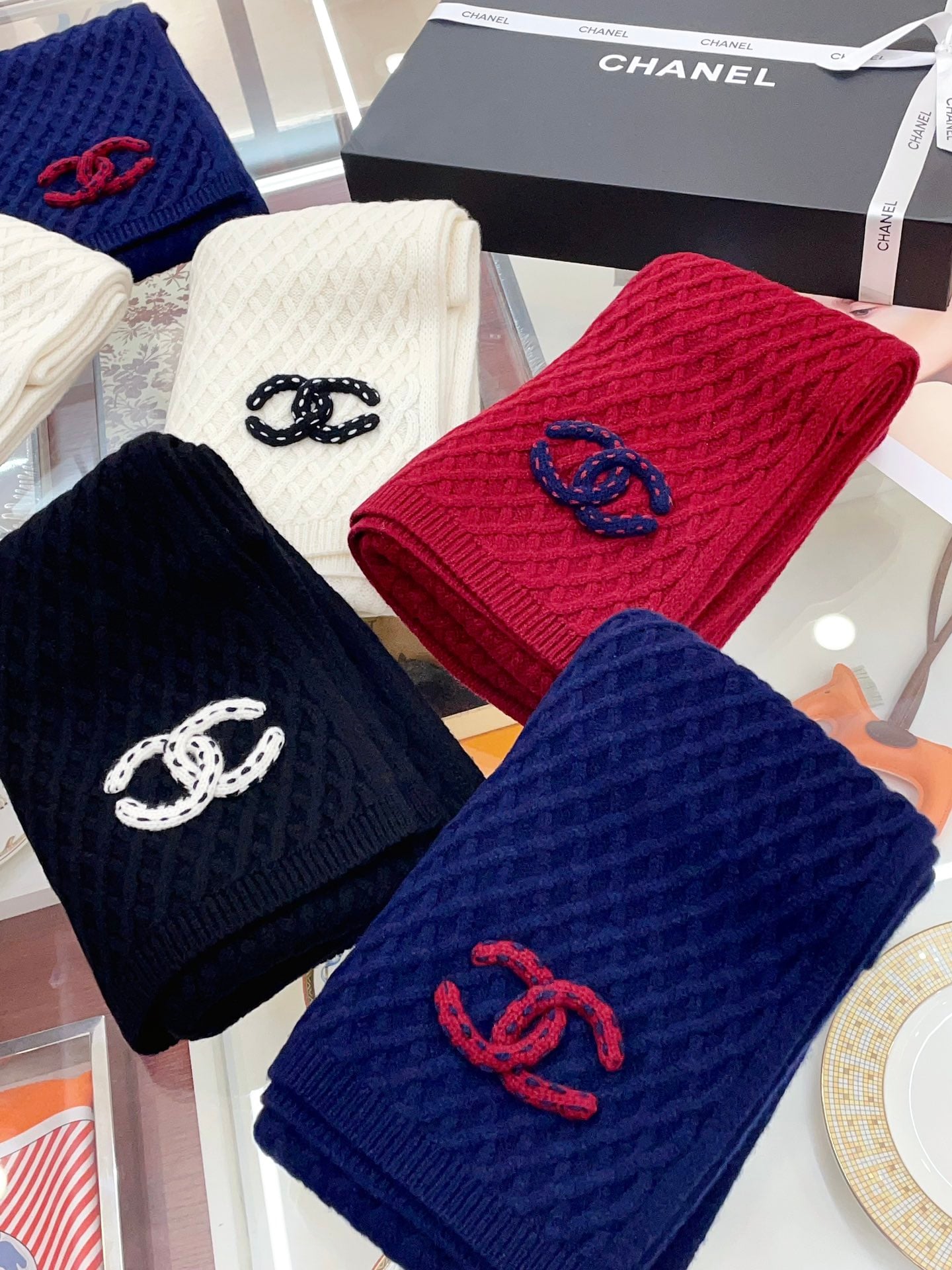 Chanel 今年新出嘅配色針織羊絨圍巾,