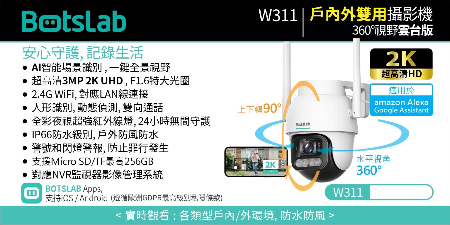 📦到貨日期:2-7天發貨 平得黎又係香品牌代理高質素戶外/室內防水ipcam🆕 https://youtu.be/PIjSUvaokmg?si=ZXw-bQz0r6iwGpqh $388件。2件起$380件。 360 Botslab W311 AI智能戶內外雙用攝影機 360°視野雲台版 🔰AI智能場景識別 , 一鍵全景視野 🔰超高清3MP 2K UHD , F1.6特大光圈 2.4G WiFi, 對應LAN線連接 🔰人形識別, 動態偵測, 雙向通話 🔰全彩夜視超強紅外線燈, 24小時無間守護 🔰IP66防水級別, 戶外防風防水 🔰警號和閃燈警報, 防止罪行發生 🔰支援Micro SD/TF最高256GB 🔰對應NVR監視器影像管理系統 🔰伺服器: 星加坡, 美國, 德國 🇭🇰香港行貨💪🏻一年保養
