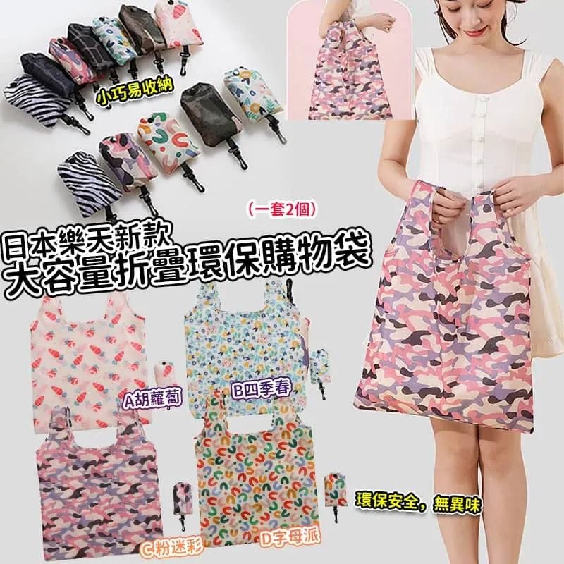 $39套2隻。日本樂天新款大容量折疊環保購物袋 (1套2個)