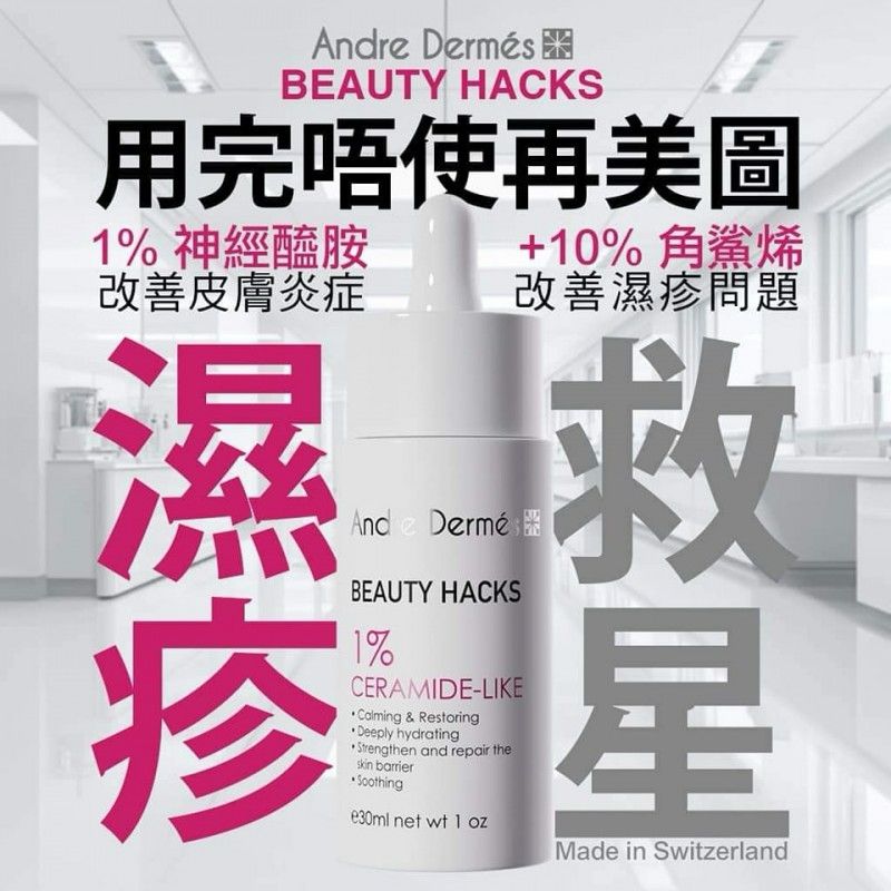 $399支。2支起$390支。瑞士Andre Dermés 1%神經酰胺-嬰兒肌鎮靜水光精華 30ML