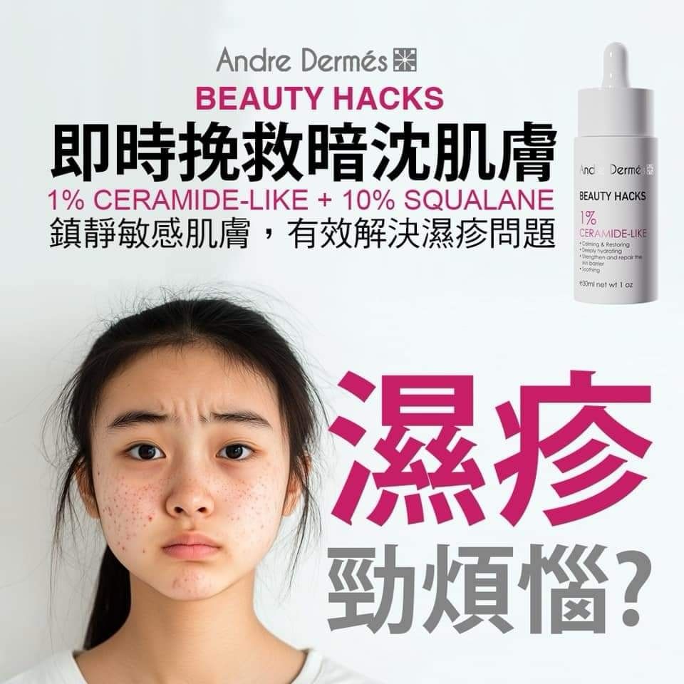 $399支。2支起$390支。 瑞士Andre Dermés 1%神經酰胺-嬰兒肌鎮靜水光精華 30ML 1星期 Andre Dermés 1%神經酰胺-嬰兒肌鎮靜水光精華 30ML 1%神經酰胺-嬰兒肌鎮靜水光精華 即時挽救暗沈肌膚 還原嬰兒肌! 肌膚即時極滑光 up up up 即時挽救暗沈肌膚 鎮靜敏感肌膚,並有效解決濕疹問題 用後絲滑感並加強皮膚防御 Ceramides(神經酰胺)有助鎖緊水份。如濕疹患者需注重皮膚乾燥問題,可使,當中Ceramides(神經酰胺) 產品,有助舒緩皮膚乾燥及濕疹痕癢。 可挽救受壓的皮膚,這款富含水分的鎮靜解決方案可修復、加強和保護皮膚屏障。 這款質地由創新的發酵假神經醯胺提供動力,具有相同的化學結構,可實現最佳效率,保濕劑可提供深層舒緩護理,使皮膚更光滑、更柔軟。 皮膚角質層中的細胞外脂質是皮膚表皮結構中最重要的結構組織之一,由Ceramides(神經酰胺)和其他重要分子所構成。細胞外脂質不但支撐著皮膚細胞,亦有助細胞與細胞之間緊密地結合在一起,形成完整穩定的皮膚屏障,維持皮膚角質層的完整性。Ceramides(神經酰胺) 更是有助形成一層疏水性薄膜,將水份鎖緊於皮膚。 建議使用方法: 於早或晚清潔面部後,取極滑光嬰兒肌鎮靜水光精華,均勻推開至全臉及頸部,待吸收後再塗上面箱即可。 主要成份 : 1% CERAMIDE 神經醯胺 : 神經醯胺在皮膚中佔有超過50%的脂質含量,是人體表皮層外間和中酯質的主要成分,同時具有親水與親油的特性,有助於保持肌膚水分的保濕力,能強化和保護皮膚屏障結構,減低對空氣污染和壓力引起的皮脂過度分泌,幫助肌膚抵禦這些不良因素的侵害,避免水分流失,增強及修復皮膚的整體健康狀態。 10% SQUALANE 10%角鯊烯 : 接近人體需要的天然保濕成分,吸收穩定,不易對肌膚造成刺激,有助於保濕及鎖水,能夠快速與肌膚皮脂融合,形成保護膜,抵禦紫外線及氧化作用的傷害,幫助肌膚維持保水機能,減少細紋生成、防止肌膚出現粗糙,打造理想的水油平衡狀態。 HYDRABERRY (VITALAB EXCLUSIVE) 覆盆子幹細胞萃取物 : 專利的覆盆子幹細胞萃取物含有多種花青素,不但具有很強的保濕作用,並且富有抗炎活性,能減輕因自由基對皮膚產生的炎症問題。 有效實驗証明,成分可刺激真皮層與表皮層中的透明質酸合成。 ORGANIC ARGAN OIL 有機摩洛哥堅果油 : 含有豐富的維生素,具有軟化、保濕和滋養作用。能促進毛孔排出有害物質,恢復天然脂質屏障,有助於延緩皮膚老化過程,加強抗氧化功效。 ORGANIC SWEET : ALMOND OIL 有機甜杏仁油 : 具有良好的親膚性,富含脂肪酸、蛋白質及各種維他命A,B1,B2,B6,E,適合任何膚質,有效地減輕皮膚發癢現象,消除紅腫、乾燥和發炎,有幫助舒緩敏感肌膚的功效。 ORGANIC JOJOBA OIL 有機荷荷芭油 : 有機荷荷芭油與人體天然皮膚產生的分泌相似,容易被吸收,且含有豐富的蛋白質、礦物質、維生素D、E,能在肌膚形成一種保濕薄膜,卻不會阻礙肌膚吸收,能改善發炎、濕疹等問題,對維護皮膚水份、預防皺紋與軟化粗糙肌也特別有效