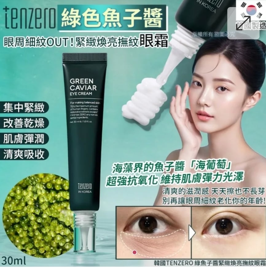 這條一定要認識 👉 韓國 TENZERO 綠魚子醬緊緻煥亮撫紋眼霜 💚