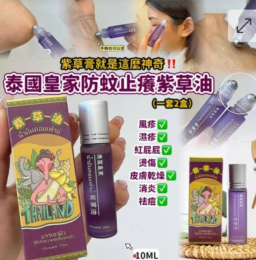 泰國 皇家防蚊止癢紫草油 10ml (1套2支)