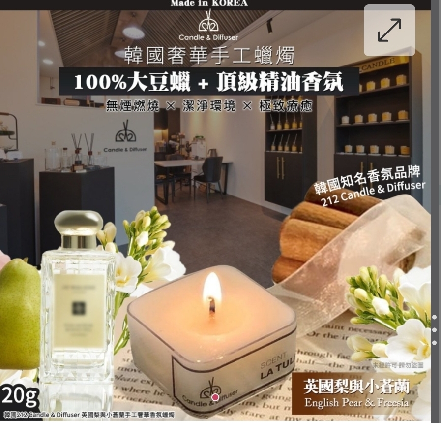 韓國212 Candle & Diffuser 英國梨與小蒼蘭手工奢華香氛蠟燭20g(1套2個)