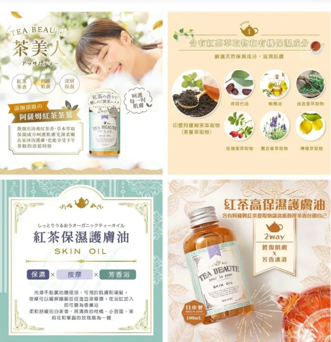 日本Roland Tea Beaute 紅茶保濕保養油 100ml