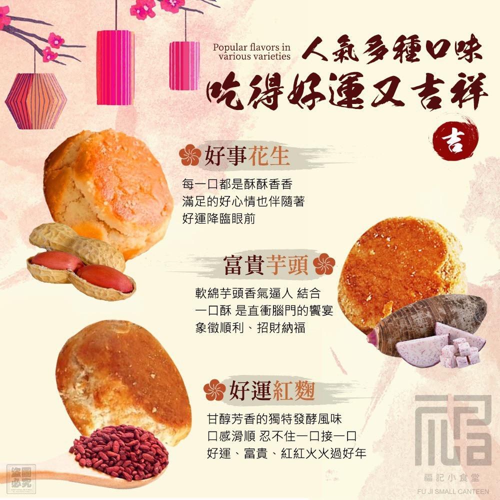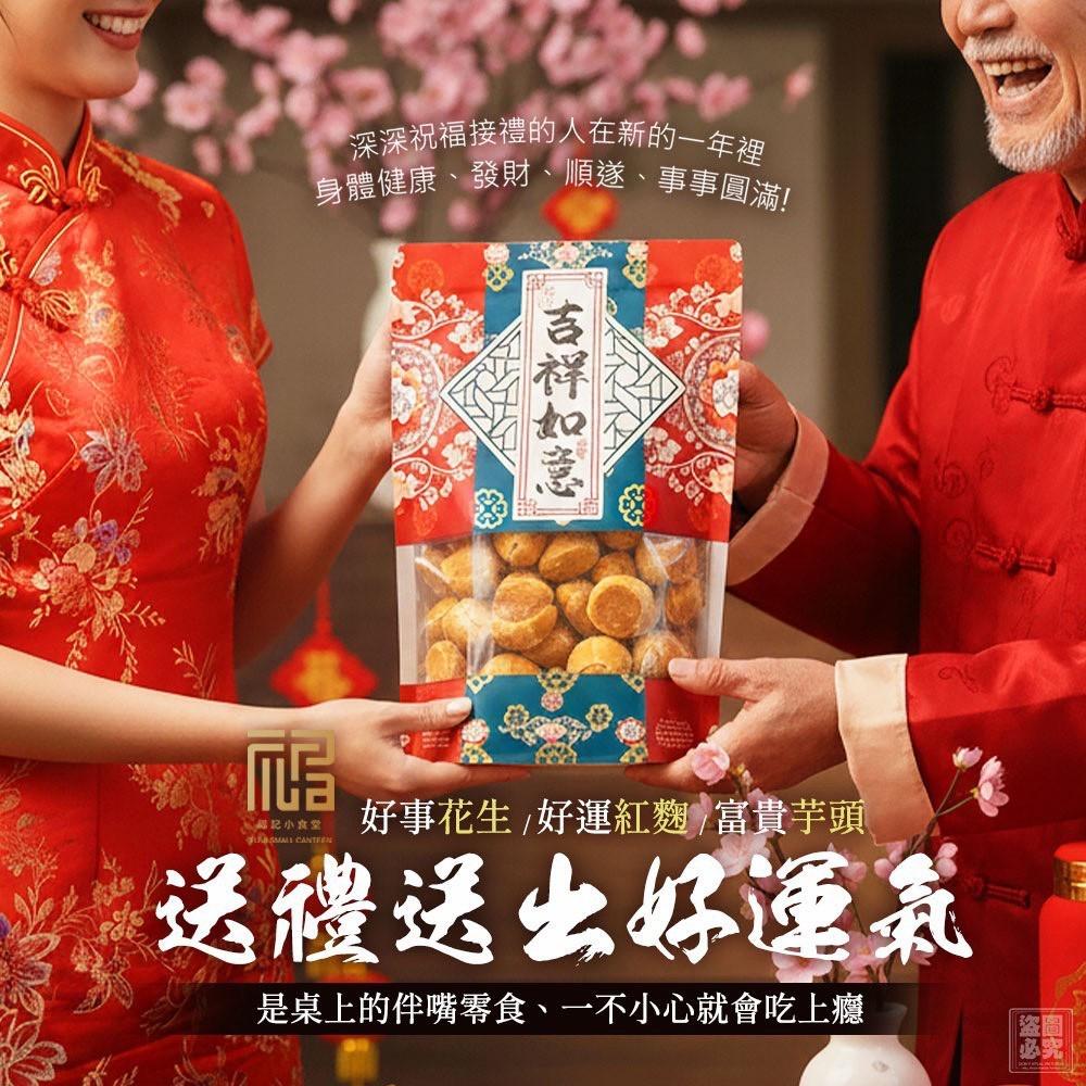 $45袋。 2袋起$34袋, 福記小食堂-吉祥如意一口酥 ⛔截單日期:2025/12/20 06:00PM 📦預計貨到日: 2月頭 A:花生 B:紅麴 C:芋頭 年節桌上最不能少的,就是這一味! 承襲中式點心「酥、香、濃郁」的講究精神 由職人細心烘烤而成 每到過年總是熱銷、被點名回購的人氣一口酥🍪 嚴選食材、保留最純粹的原味 一入口就是滿滿酥香 外層金黃酥鬆、層次細緻 不油、不膩、不乾口 香氣在嘴裡慢慢散開 一顆接一顆,團圓桌上不知不覺就被掃光😋 🥠 一口大小剛剛好 象徵圓滿、吉祥、事事如意 過年圍爐、拜年、走春 擺在桌上就是滿滿年味❤️ 搭配 年節專屬喜氣包裝 「吉祥如意」寓意直接寫在包裝上 送禮體面、祝福到位 每年過年前都是被詢問、被預訂的人氣款✨ 🌰 三款人氣口味任你選 建議年節一次備齊 ▪️ 花生|濃郁堅果香,經典不退流行 ▪️ 紅麴|淡淡紅麴芳香,喜氣又討喜 ▪️ 芋頭|綿密芋香、不甜膩,長輩也愛 ✨ 酥鬆細緻、層次分明 全家大小都能接受的口感 年節聊天配茶、飯後解饞都很合適 不少團友都是「吃完再補一包」 🎁 過年送禮不踩雷選擇 拜年、走春、探親 一包帶著走,年味、誠意一次到位 好吃又有好寓意,收到的人都會笑💛 酥香、喜氣、團圓一次到位 過年桌上,一定要有這包吉祥如意一口酥! 🔍 產品資訊 ▪️ 產地:台灣 ▪️ 規格:200g/袋(約 20 顆) ==⚠️ 聲明 ⚠️== 1.本貨品為平行進口正貨。 2.所有帖文內容只作分享及參考用途。為免混淆視聽,所有商標或版權均屬有關商品品牌商標的持有人,敬請留意。 3.空運/海運有可能因各種不明因素影響而延誤到貨,所有貨品一經訂購後,如非廠家缺貨,不設取消/退貨/換貨。 4.貨品在運輸途中導致產品包裝外盒有任何損毀凹陷,但不影響其產品本身食用/使用,或有機會不預設外盒出貨,我司不會作任何更換或退款。 5.以上資料及外盒包裝只供參考,商品外盒原廠有更換新包裝權利,一切以實物為準。 6.顏色或因拍攝器材或顯示螢幕等因素而與實物有異,以上圖片及文字僅供參考,一切以實物為準。
