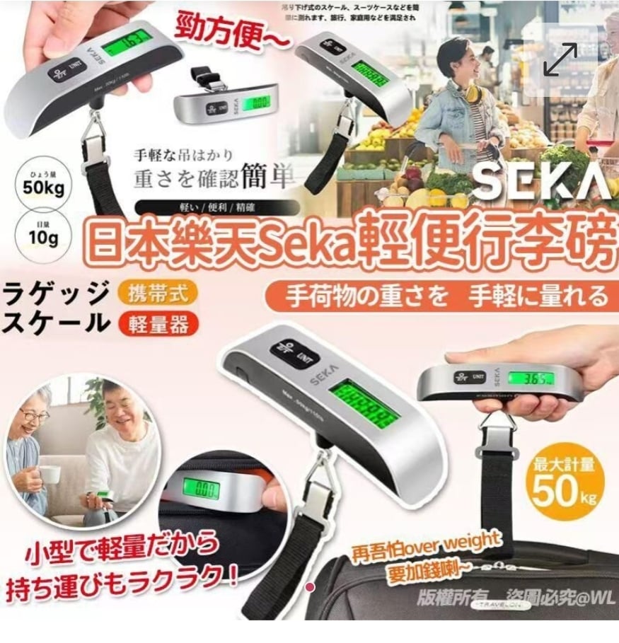 $48個. 2個或以上每個$38個. 日本No.1樂天極方便Seka輕便行李磅 ⛔截單日期:2025/12/24 06:00PM 📦預計貨到日:2026年1月尾 旅行must have !!‼️ 勁方便~再吾怕over weight 要加錢喇~~~ 屋企久唔久要用到佢 用起上黎有少少麻煩... 收納點都唔係好就手點好 ⭐輕便手提稱⭐ 當然要做好準備✈️隨時起飛 少出門多左使用速遞pick up✅ 寄野比國外親友👀重量難預計 呢個時候就要輕便手提神器‼️ 唔會佔用屋企空間😚又實用 不鏽鋼本體💪🏼耐用堅固之最 重量量度由10g到50kg都得⭕ 輕便包裹定大行李🥰通通稱到 一按鍵設計👍🏼直觀簡單方便使用 簡單實用💯唔係再超重估估下 寄野唔在係麻煩事❌方便小法寶 小小法寶唔會佔用屋企空間😘 尺寸: 13*3*4.3cm 電量供應: 2032紐扣電 (不連電池) 產地:中國 ==⚠️ 聲明 ⚠️== 1.本貨品為平行進口正貨。 2.所有帖文內容只作分享及參考用途。為免混淆視聽,所有商標或版權均屬有關商品品牌商標的持有人,敬請留意。 3.空運/海運有可能因各種不明因素影響而延誤到貨,所有貨品一經訂購後,如非廠家缺貨,不設取消/退貨/換貨。 4.貨品在運輸途中導致產品包裝外盒有任何損毀凹陷,但不影響其產品本身食用/使用,或有機會不預設外盒出貨,我司不會作任何更換或退款。 5.以上資料及外盒包裝只供參考,商品外盒原廠有更換新包裝權利,一切以實物為準。 6.顏色或因拍攝器材或顯示螢幕等因素而與實物有異,以上圖片及文字僅供參考,一切以實物為準。