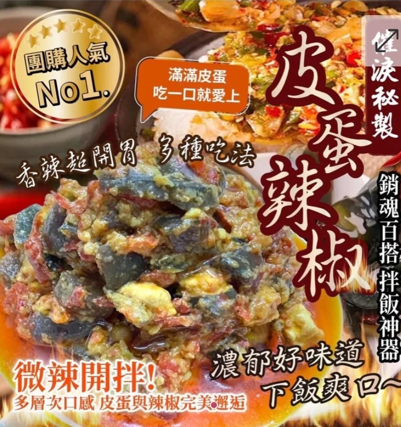 $48包.2包或以上:$38包.台灣皮蛋辣椒醬 100g