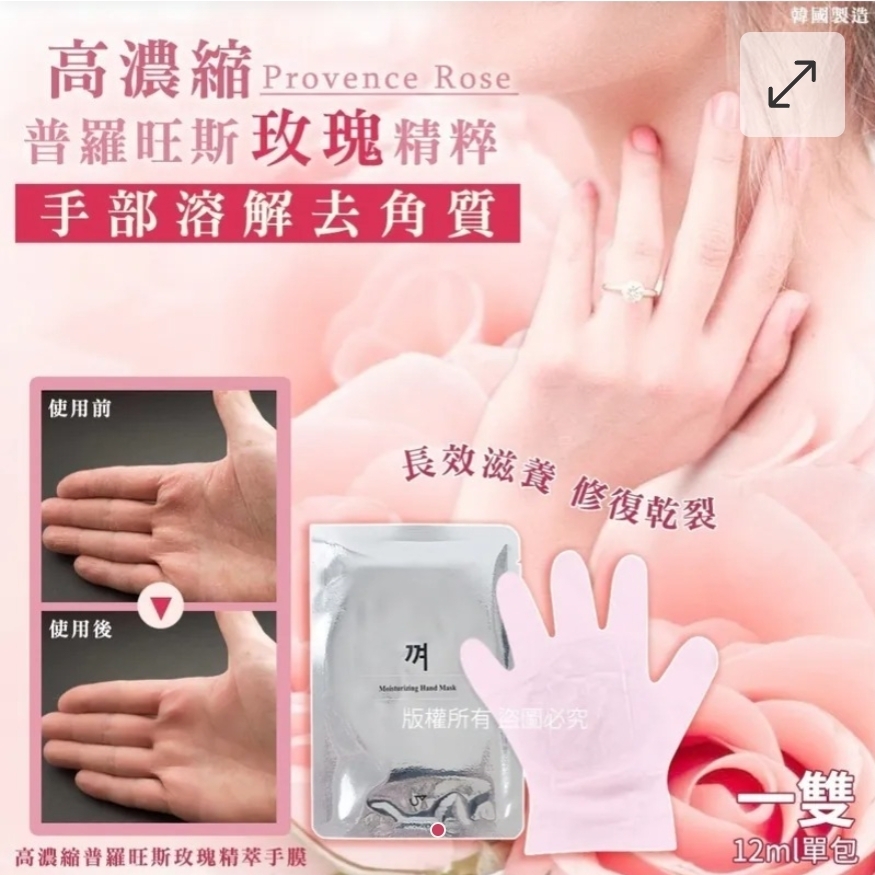$48套5包.2套起$38套.高濃縮普羅旺斯玫瑰精萃手膜一雙12ml(1套5包)