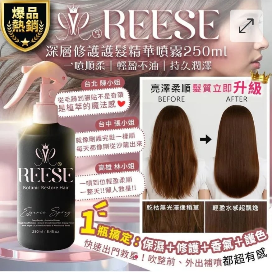 $48支。2支起$38支。REESE 深層修護護髮精華噴霧