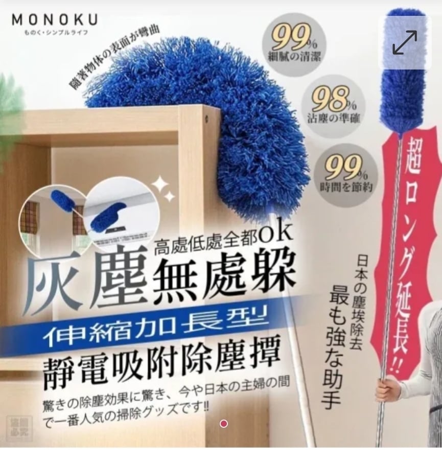 $48支. 2支起$38支. 日本MONOKU-伸縮加長型靜電吸附除塵撢 ⛔截單日期:2025/12/20 06:00PM 📦預計貨到日: 2月中 清掃無距離,超實用! 💥灰塵再頑固,也逃不過它的厲害💥 高處難擦、櫥櫃卡灰、床底藏汙 成為了日常打掃家中的煩惱 ✨一支撢子,徹底改變居家打掃的效率✨ 【日本MONOKU-伸縮加長型靜電吸附除塵撢】 🔥日本家庭主婦一致熱推的清潔神器登場🔥 連電視台的打掃節目主持人都介紹過它!! 高處、低處、死角灰塵一次清光光💨 不需費力、不怕掉毛,乾淨看得見✨ 💖讓打掃不再是家事,而是整潔的享受💖 ✨✨輕輕鬆鬆就能讓家裡乾淨溜溜✨✨ ✨靜電吸附科技|灰塵毛髮通通吸走 ✨不揚塵、不掉毛|潔淨無死角 ✨可伸縮設計|高處低處都輕鬆搞定 🩶吊燈、天花板、櫥櫃、床底全適用 🧹一支多用,居家整潔再也不費神 ⚡可拆式撢頭|柔軟纖維、速乾不發霉 💡尾端掛勾設計|收納超方便 🎯細節決定品質🎯 🔹防旋轉握柄,穩固好握不打滑 🔹超細纖維撢頭,耐用不變形 🔹可水洗速乾,重複使用更環保 🌿輕輕一撢,灰塵全OUT🌿 潔淨空間不只舒服,更有幸福感💖 ✨讓每一次打掃,都成為療癒時刻✨ 🔍產品資訊🔍 品牌:日本 來源 : 日本公司貨 產地 : PRC代工 包裝:彩盒包裝 材質 :【撢頭】超細纖維、PP 【伸縮桿】不鏽鋼、PP 尺寸:【撢頭】40*15cm 【伸縮桿】40-210cm ==⚠️ 聲明 ⚠️== 1.本貨品為平行進口正貨。 2.所有帖文內容只作分享及參考用途。為免混淆視聽,所有商標或版權均屬有關商品品牌商標的持有人,敬請留意。 3.空運/海運有可能因各種不明因素影響而延誤到貨,所有貨品一經訂購後,如非廠家缺貨,不設取消/退貨/換貨。 4.貨品在運輸途中導致產品包裝外盒有任何損毀凹陷,但不影響其產品本身食用/使用,或有機會不預設外盒出貨,我司不會作任何更換或退款。 5.以上資料及外盒包裝只供參考,商品外盒原廠有更換新包裝權利,一切以實物為準。 6.顏色或因拍攝器材或顯示螢幕等因素而與實物有異,以上圖片及文字僅供參考,一切以實物為準。