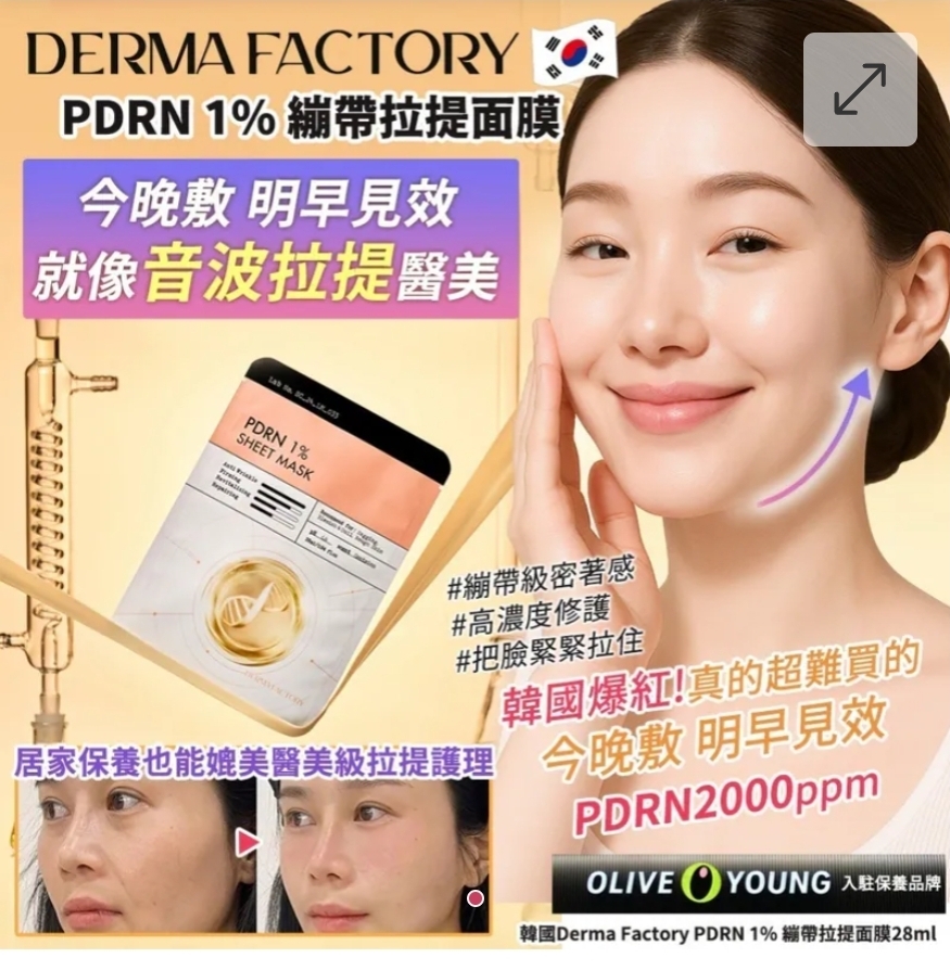 $49套..2套起$39套 .韓國Derma Factory PDRN 1% 繃帶拉提面膜28ml(1套5片)