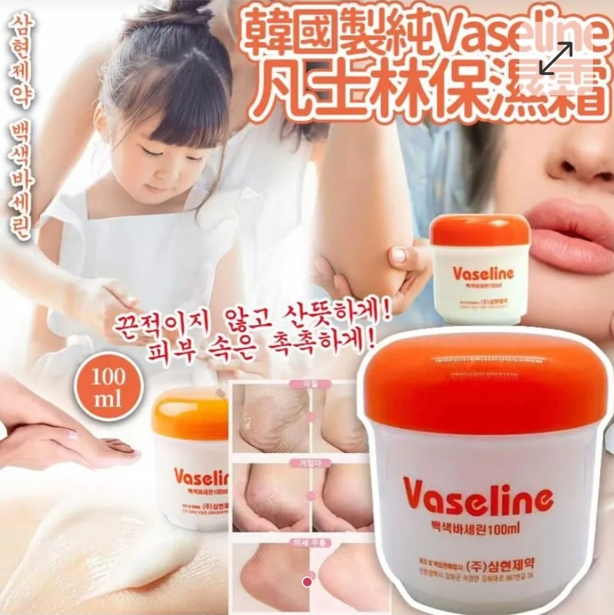 $49套2盒。 2套或以上每套$39套, 韓國Vaseline凡士林純保濕霜100ml-1套2個 ⛔截單日期:2025/12/16 06:00PM 📦預計貨到日:2月頭 供應商 🈹買一送一~🈹 超級抵啊~~~ 🔸獨特精製方法,不含任何不純物質,大人小孩都可以使用的韓國凡士林。 🔸凡士林具防水性,是一種很好的保濕用品。 可用於全身-包括臉👩🏻手✋🏻腳🦵嘴唇💋等乾燥的部位。 🔸有富貴手困擾的人可以在睡前將雙手塗滿凡士林🙌🏼再戴上薄薄的棉手套睡覺😴 據說能有效改善富貴手的情形。 ‼️注意事項‼️ ⚠️請勿用於傷口、腫脹或異常部位,如有不適請立即停止使用。 容量:一套2個 / 100ml x 2 產地:韓國 ==⚠️ 聲明 ⚠️== 1.本貨品為平行進口正貨。 2.所有帖文內容只作分享及參考用途。為免混淆視聽,所有商標或版權均屬有關商品品牌商標的持有人,敬請留意。 3.空運/海運有可能因各種不明因素影響而延誤到貨,所有貨品一經訂購後,如非廠家缺貨,不設取消/退貨/換貨。 4.貨品在運輸途中導致產品包裝外盒有任何損毀凹陷,但不影響其產品本身食用/使用,或有機會不預設外盒出貨,我司不會作任何更換或退款。 5.以上資料及外盒包裝只供參考,商品外盒原廠有更換新包裝權利,一切以實物為準。 6.顏色或因拍攝器材或顯示螢幕等因素而與實物有異,以上圖片及文字僅供參考,一切以實物為準。