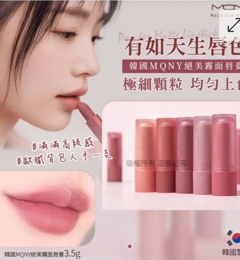 $49支.2支起$39支.韓國MQNY絕美霧面唇膏3.5g