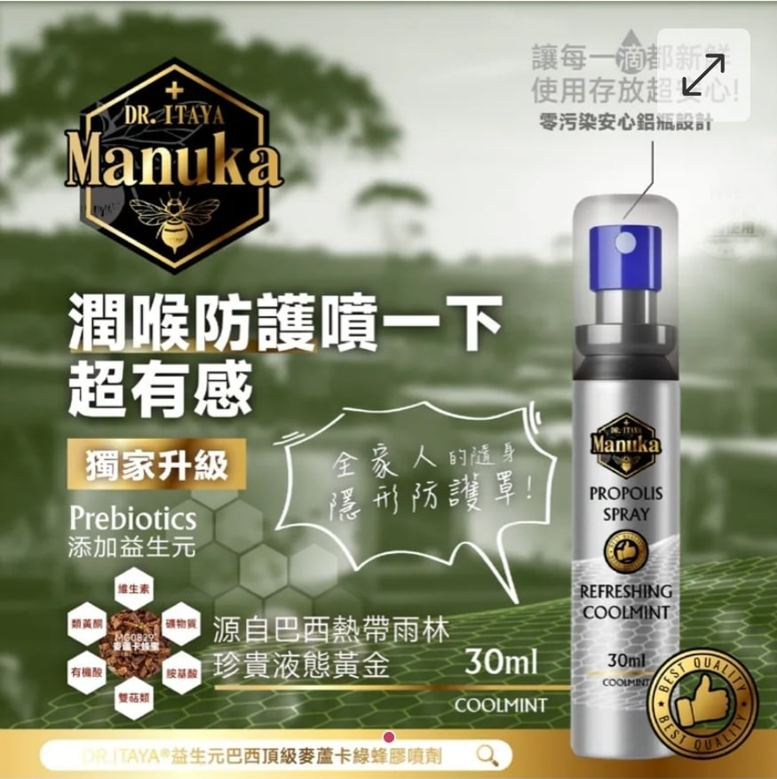 $49支.2支起$40支.DR.ITAYA®益生元巴西頂級麥蘆卡綠蜂膠噴劑30ml