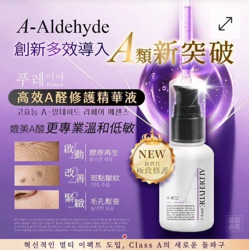 $50支.2支或以上:$40支.韓國 Pureia 高效A醛修護精華液 50ml
