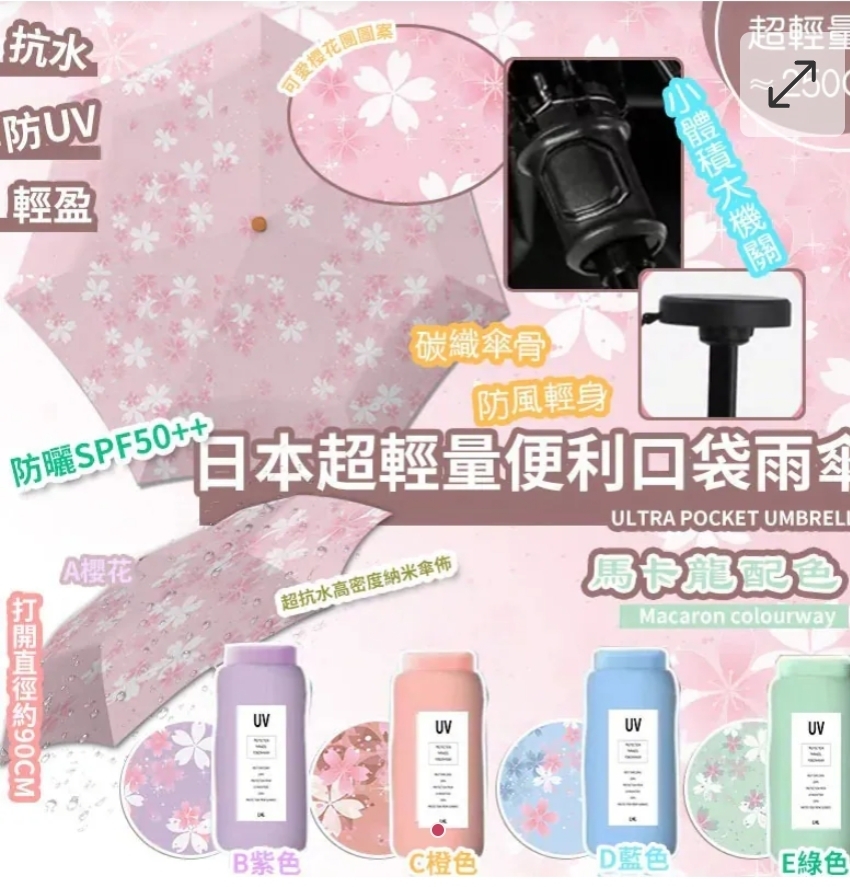 $55件. 2件起$45件.LHL日本超輕量便利口袋雨傘 (顏色隨機)