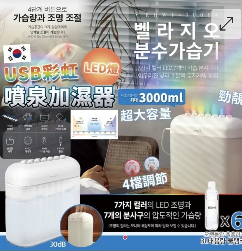 $55件.2件起$45件。 韓國USB彩虹色LED燈噴泉加濕器 ⛔截單日期:2025/12/18 06:00PM 📦預計貨到日: 2月中 👏👏噴出彩虹呀🌈🌈 秋冬乾燥🍂天氣必備,尤其容易鼻敏感人士🏡屋企有個加濕器真係舒服好多😌😌 韓國🇰🇷直送🌈USB彩虹色LED燈噴泉加濕器原價$3xx🎡happyBuy靚價$73/個😁😁 屋企都有彩虹!🌈韓國🇰🇷同事推薦👍👍被網民評選為十大最好用嘅加濕機,又靚又實用,霧化效果超好,成間屋都濕潤✌🏻✌🏻 💦超大容量3L水箱,可長時間保持水潤🦾四級加濕調節,可根據環境調節加濕量,放客廳🛋️用都無問題!! 👉最正係內裏有7枝加濕器過濾器,可一起使用,也可分拆使用🙌🏻🙌🏻 加濕器噴口是彩虹色🌈LED燈設計,超靚又有氣氛🥰🥰鍾意 ✅可以彩紅7色開曬或 ✅只開某幾枝都可以!! 👍上下分離型本體,很方便清洗,不會藏污垢 👂🏼30分貝低噪音加濕,安靜加濕,不會有噪音 📌注:首次使用時,需把加濕棉放入水中浸濕後再開機使用 ==⚠️ 聲明 ⚠️== 1.本貨品為平行進口正貨。 2.所有帖文內容只作分享及參考用途。為免混淆視聽,所有商標或版權均屬有關商品品牌商標的持有人,敬請留意。 3.空運/海運有可能因各種不明因素影響而延誤到貨,所有貨品一經訂購後,如非廠家缺貨,不設取消/退貨/換貨。 4.貨品在運輸途中導致產品包裝外盒有任何損毀凹陷,但不影響其產品本身食用/使用,或有機會不預設外盒出貨,我司不會作任何更換或退款。 5.以上資料及外盒包裝只供參考,商品外盒原廠有更換新包裝權利,一切以實物為準。 6.顏色或因拍攝器材或顯示螢幕等因素而與實物有異,以上圖片及文字僅供參考,一切以實物為準。