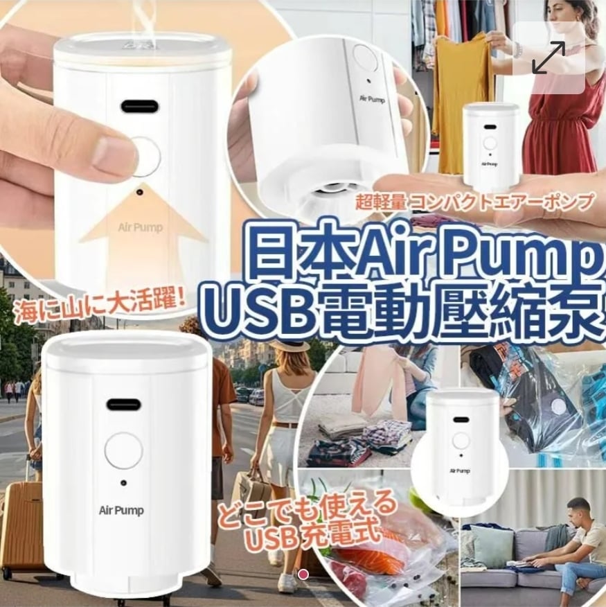 日本Air Pump旅行神器usb電動壓縮泵
