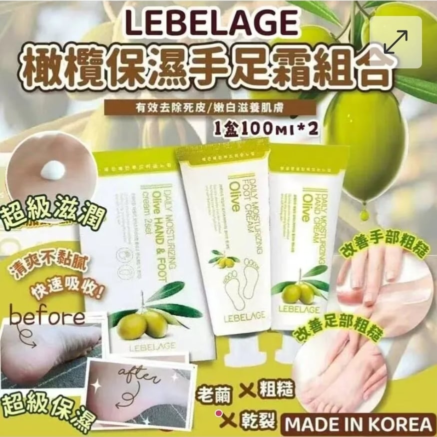 $55套.2套或以上:$48套.韓國 LEBELAGE 橄欖保濕手足霜組合套裝