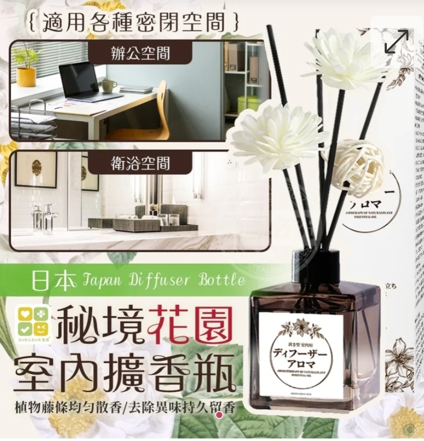$55套3支。 2套起$45套. 日本CLH秘境花園室內擴香瓶(1套3支) ⛔截單日期:2025/11/14 06:00PM 📦預計貨到日: 2026年1月尾 想提升生活質感,營造更好的生活環境~ 日本CLH秘境花園室內擴香瓶是你的好選擇 精選人氣花香,讓室內空氣多了迷人氣息~ ✨純白的梔子花香 清純而優雅的微甜氣息,淡雅清香令人神清氣爽 彌久留香的特別香味,令人舒服的氛圍! ✨植物藤條均勻散香 藤條只要插入擴香瓶就能均勻散香,香味持久好聞 可愛花朵線球造型,可愛又吸睛,使用都有好心情! ✨去除異味持久留香 散發香氣同時,也能去除空氣異味 滿屋芬芳氣息,一整天都有好心情! ✨50ml超值大容量 一瓶就能使用很久,持續留香每一天! 在室內就能享受自然的香氛氣息! ✨適用各種空間 不管是居家環境、工作環境、浴室廁所都能放置 營造滿滿的生活儀式,生活更優雅有品味! ✨日本人也著迷的擴香瓶 愛不釋手的日常備品🥰🥰 讓人放鬆心靈的生活美學 營造浪漫的花園香薰,讓家裡每天都香香的! 日本CLH秘境花園室內擴香瓶讓你輕鬆營造浪漫空間 清新空氣,中和異味,讓生活更有品質! 每天都是美好的一天❤️❤️❤️ 【商品配件】-5根擴香棒+花2個+球1個 【商品效期】-3年 【商品重量】-50ml ==⚠️ 聲明 ⚠️== 1.本貨品為平行進口正貨。 2.所有帖文內容只作分享及參考用途。為免混淆視聽,所有商標或版權均屬有關商品品牌商標的持有人,敬請留意。 3.空運/海運有可能因各種不明因素影響而延誤到貨,所有貨品一經訂購後,如非廠家缺貨,不設取消/退貨/換貨。 4.貨品在運輸途中導致產品包裝外盒有任何損毀凹陷,但不影響其產品本身食用/使用,或有機會不預設外盒出貨,我司不會作任何更換或退款。 5.以上資料及外盒包裝只供參考,商品外盒原廠有更換新包裝權利,一切以實物為準。 6.顏色或因拍攝器材或顯示螢幕等因素而與實物有異,以上圖片及文字僅供參考,一切以實物為準。