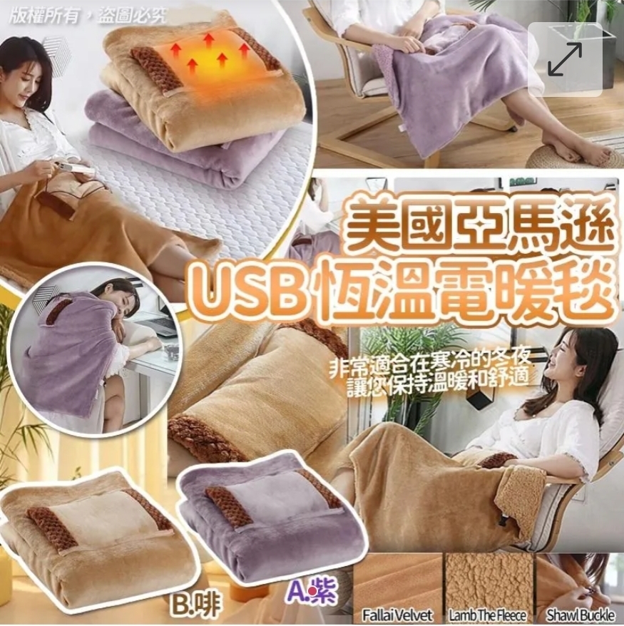 $55張.2張或以上:$48張.美國亞馬遜 USB 雙面恆溫電暖毯