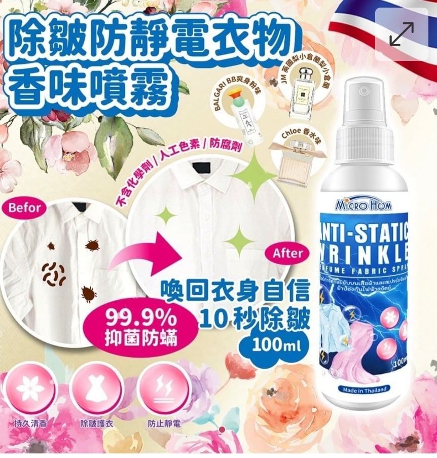 泰國 MIRCO HOM 除皺防靜電衣物香水味噴霧 100ml