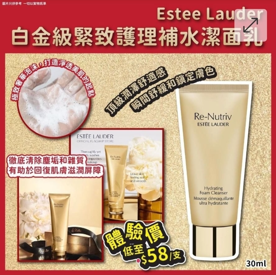 $55支.2支或以上每支$45支.Re-Nutriv白金級緊致護理補水潔面乳(30ml)