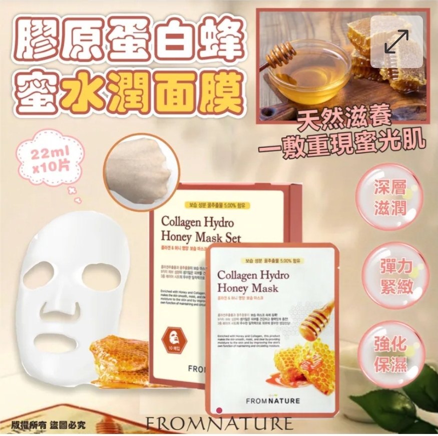 $55盒.2盒或以上:$45盒.韓國 FROMNATURE 膠原蛋白蜂蜜水潤面膜 (1盒10片)