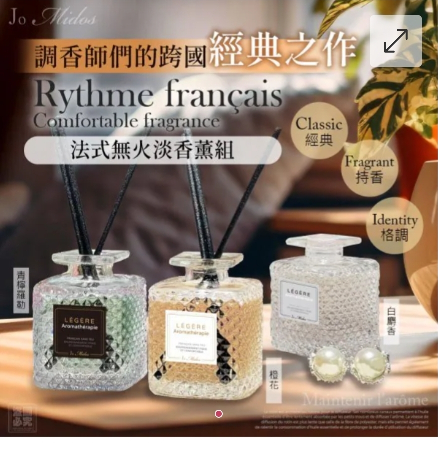 $55組. 2組起$45組. Jo Midos 法式無火淡香薰6入組 ⛔截單日期:2025/11/25 06:00PM 📦預計貨到日: 2026年1月中 Jo Midos 法式無火淡香薰6入組 - 贈手提袋 💝 情人節限定 法式浪漫香氛 × 精緻禮盒提袋組 每一瓶香味,都是一段巴黎街角的故事 每天回家,像是被愛包圍,溫柔又浪漫❤️ 像在巴黎街頭漫步一樣浪漫💐 從打開瓶蓋的那一刻起, 就像走進一間低調奢華的法式香氛小店,空氣瞬間有了故事,每分每秒都變得溫柔又有質感。 超值開團,破盤CP值 1套3個味道共6瓶,贈手提袋 🉐️🉐️🉐️開團價一盒$120 🎁 情人節送禮最懂妳的心思 ✔️附贈質感禮盒+手提袋,拆禮物瞬間超加分! ✔️無需點火,安全又安心,居家有毛孩也放心用 ✔️擺著就很美,法式琉璃瓶身點亮居家氛圍感 ✔️香味溫和持久,不刺鼻不厚重,連男友都愛上 🔸清檸羅勒|清新草本調 帶有檸檬皮與薄荷的自然氣息,彷彿午後陽光灑進廚房 >推薦:浴廁、辦公室、廚房,清爽不膩,男女皆宜 🔸白麝香|皂感柔和調 就像剛洗完澡裹上棉柔浴巾的療癒感,溫柔又安心 >推薦:臥室、房間,助眠放鬆,媽媽們的最愛香 🔸橙花|淡雅花香調 甜中帶白花的純淨香氣,彷彿漫步在春日香氛街頭 >推薦:玄關、客廳、化妝桌,質感生活小物首選 💬: 這組香薰一開箱就知道有多精緻,不是市面那種化學味的廉價擴香,是會讓你想要反覆回購、家裡每個空間都想放的香氣!我自己是放房間+廁所,每次回家都覺得好放鬆~~想買香氛又怕味道太重的姐妹,這款你一定要收! 產品資訊 產地:PRC (台灣公司貨) 效期:3年 📦 商品內容 香氛瓶 × 6瓶 貼紙×6張 擴香棒× 12支 情人節限定禮盒+手提袋 香味:清檸羅勒/白麝香/橙花 (3個味道各2瓶) ==⚠️ 聲明 ⚠️== 1.本貨品為平行進口正貨。 2.所有帖文內容只作分享及參考用途。為免混淆視聽,所有商標或版權均屬有關商品品牌商標的持有人,敬請留意。 3.空運/海運有可能因各種不明因素影響而延誤到貨,所有貨品一經訂購後,如非廠家缺貨,不設取消/退貨/換貨。 4.貨品在運輸途中導致產品包裝外盒有任何損毀凹陷,但不影響其產品本身食用/使用,或有機會不預設外盒出貨,我司不會作任何更換或退款。 5.以上資料及外盒包裝只供參考,商品外盒原廠有更換新包裝權利,一切以實物為準。 6.顏色或因拍攝器材或顯示螢幕等因素而與實物有異,以上圖片及文字僅供參考,一切以實物為準。
