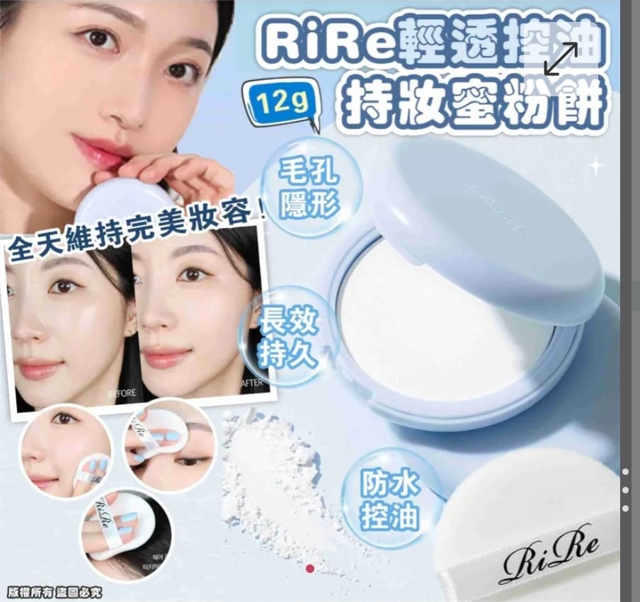 $58件.2件或以上:$48件.韓國 RIRE 輕透控油持妝蜜粉餅 12g