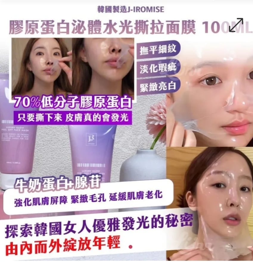 $58支.2支或以上:$48支.韓國製造 J-IROMISE 膠原蛋白泌體水光撕拉面膜 100ml