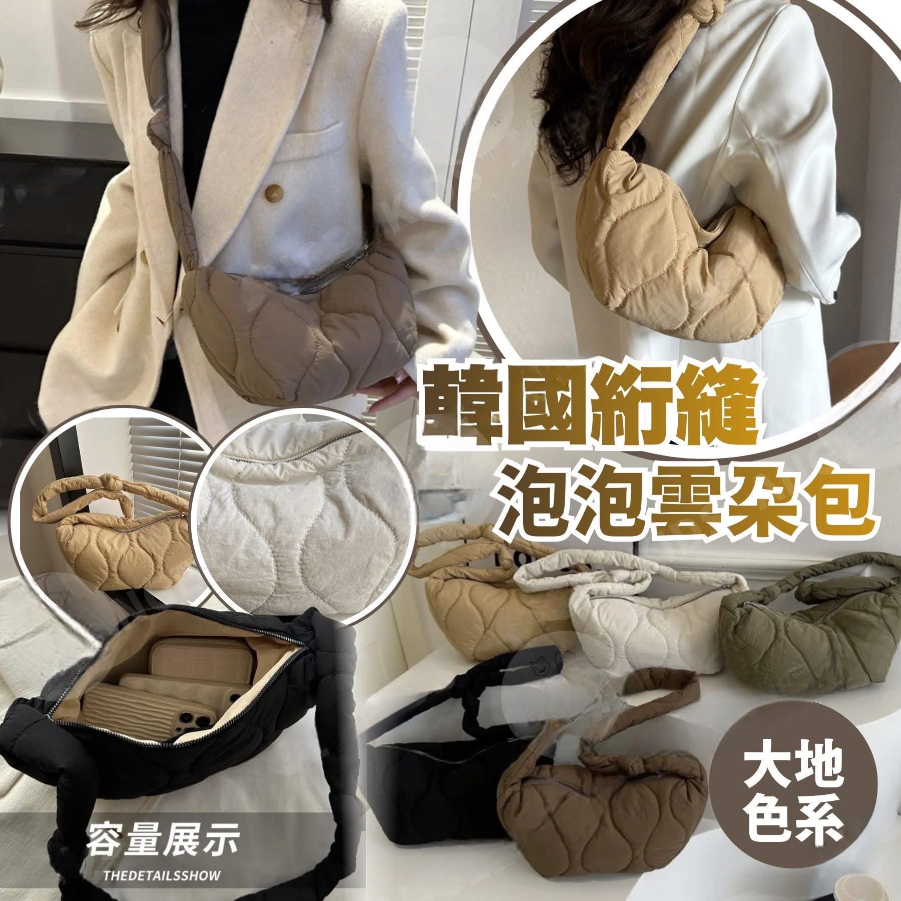 【👜☁️ 韓國大熱 • 絎縫泡泡雲朵包 • 百搭大地色系!】