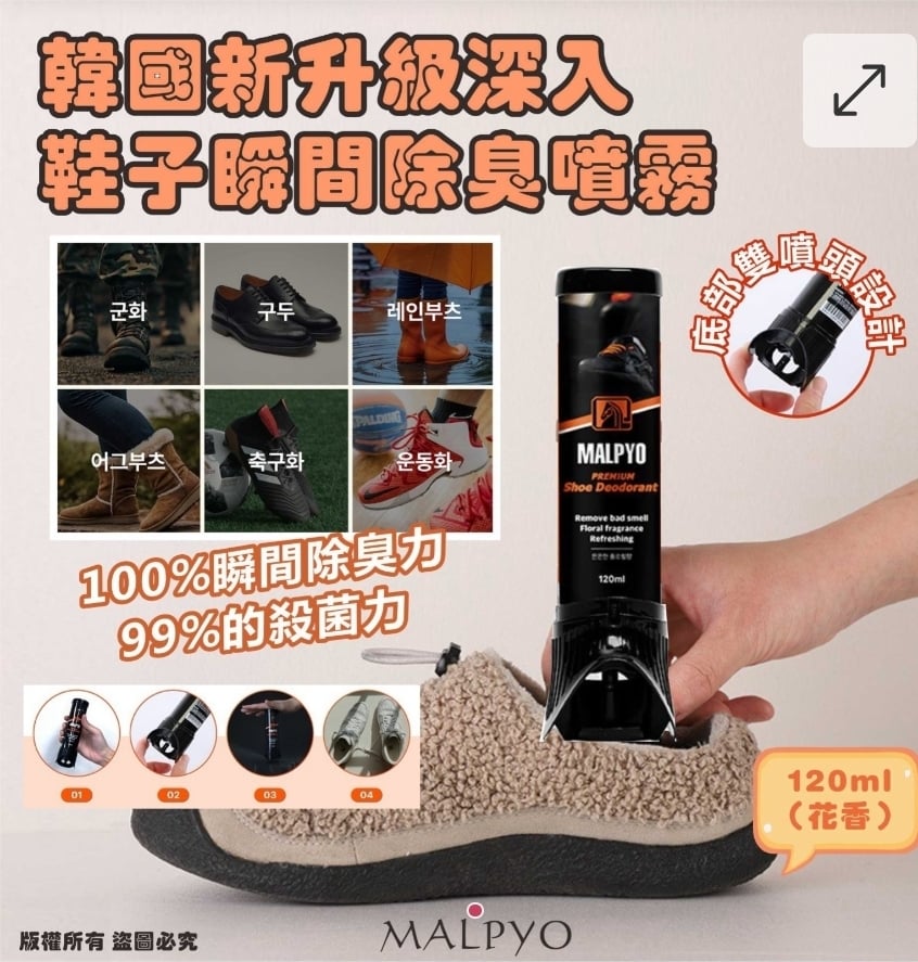 韓國 MALPYO 深入鞋子瞬間除臭噴霧 120ml