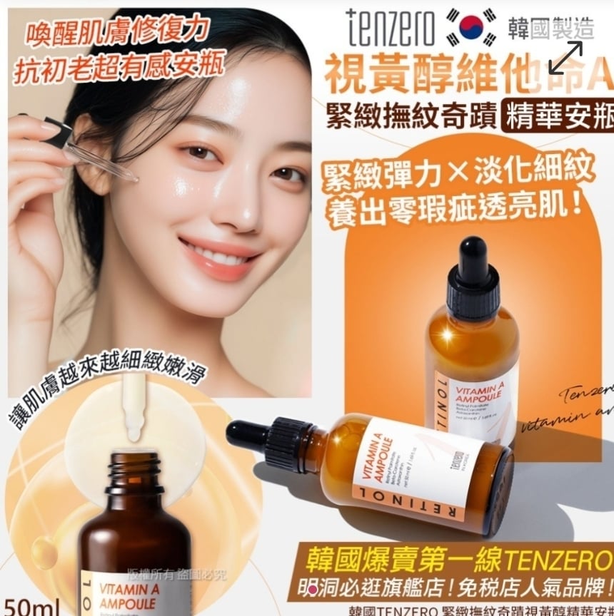 韓國 TENZERO 緊緻撫紋奇蹟視黃醇精華安瓶 50ml
