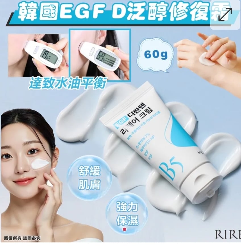 $63支.2支或以上:$53支.韓國 RIRE EGF D 泛醇修復霜 60g
