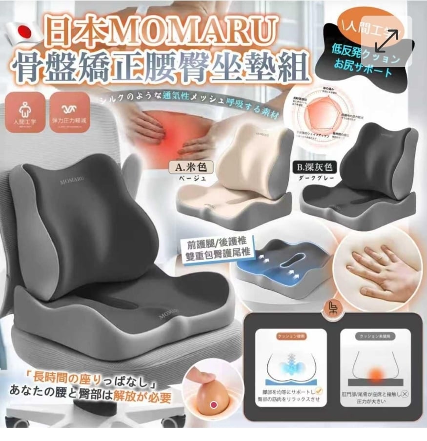 $65件。2件起$55件。 日本 Momaru 3D 骨盤矯正腰臀坐墊套裝 ⛔截單日期:2025/10/15 06:00PM 📦預計貨到日:12月頭 A.米色 B.深灰色 ✅緩解腰部臀部疼痛 ✅長時間久坐不累,減輕腰椎壓力 ✅人體工學設計,支撐托住後腰 ✅W型座墊造型,盆股壓力釋放 ✅腰部兩側平衡承壓 🤲🏻設有中孔設計,也可合用以下情況🤲🏻 🔘孕婦 🔘手術後 🔘痔瘡 🔘尾椎痛 📍採用高密度太空記憶棉,舒適慢回彈記憶綿續面料材質透氣,適合長時間使用 ==⚠️ 聲明 ⚠️== 1.本貨品為平行進口正貨。 2.所有帖文內容只作分享及參考用途。為免混淆視聽,所有商標或版權均屬有關商品品牌商標的持有人,敬請留意。 3.空運/海運有可能因各種不明因素影響而延誤到貨,所有貨品一經訂購後,如非廠家缺貨,不設取消/退貨/換貨。 4.貨品在運輸途中導致產品包裝外盒有任何損毀凹陷,但不影響其產品本身食用/使用,或有機會不預設外盒出貨,我司不會作任何更換或退款。 5.以上資料及外盒包裝只供參考,商品外盒原廠有更換新包裝權利,一切以實物為準。 6.顏色或因拍攝器材或顯示螢幕等因素而與實物有異,以上圖片及文字僅供參考,一切以實物為準。