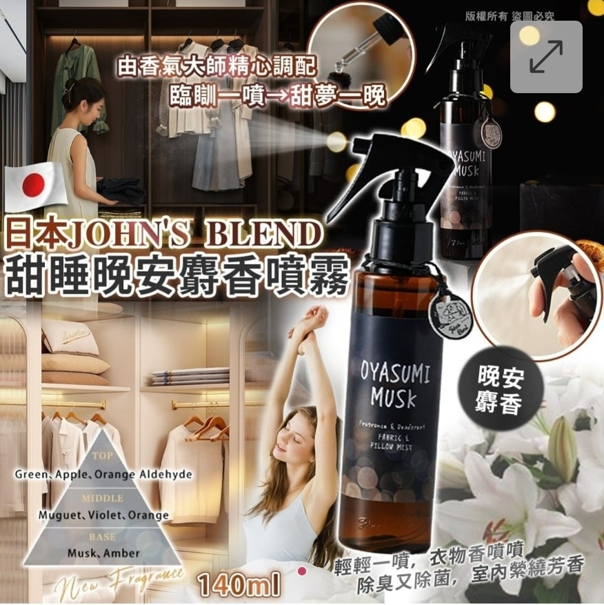 🆕日本John’s Blend甜睡晚安麝香噴霧