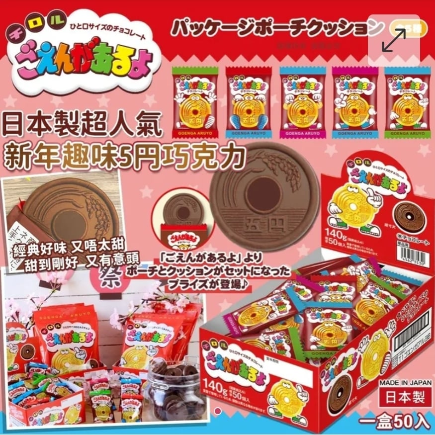 $65套.2套或以上$55套.日本製超人氣新年趣味5円巧克力 (1盒50入)