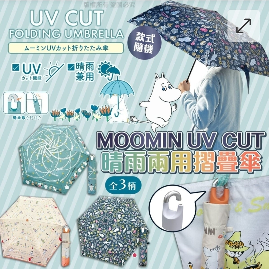 $65把,2把或以上$55把,日本MOOMIN UV CUT晴雨兩用摺疊傘(款式隨機)