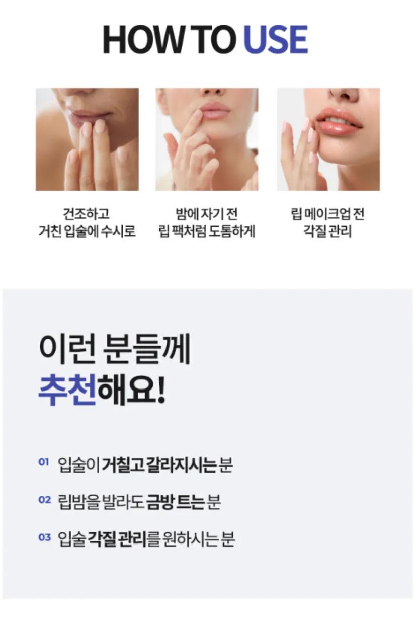 質地清爽 質地輕盈、滑順,能快速吸收,不會留下黏膩感,適合日常使用,也可作為睡前厚敷的唇膜。