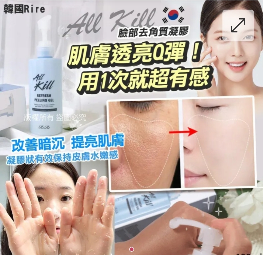 $65支.2支或以上:$55支.韓國 RIRE ALL KILL 臉部去角質凝膠 190ml
