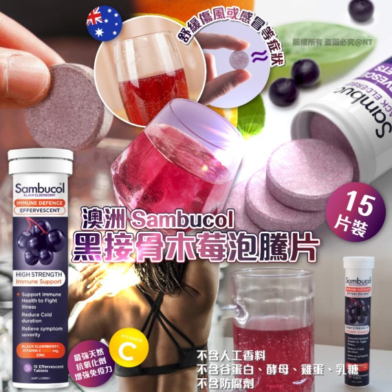 $65筒,2筒或以上$55筒。Sambucol黑接骨木莓泡騰片15片裝