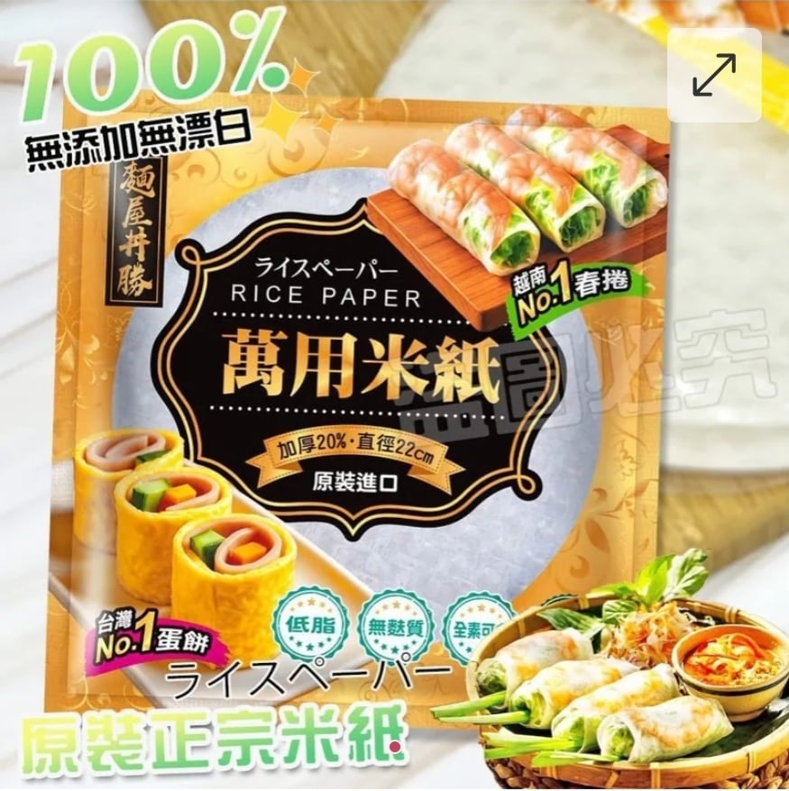 $65組3包. 2組起$55組. 麵屋丼勝-米紙(春捲皮)200G《一組3包》 ⛔截單日期:2025/10/10 06:00PM 📦預計貨到日:12月頭 🎊為台灣而生 麵屋丼勝米紙200g🎊 太容易破?買回去不好用? 絕對是因為還沒購入這牌!! 媽媽間CP值超高 加厚20%超好用 . 🥞 還在用蛋餅皮?熱量超驚人! 一片蛋餅皮 -約200卡 換成【萬用米紙】 -僅35~40卡 不只清爽低卡,還是媽媽們新料理神器 ✅加厚20%👉不易破!包蛋、包菜都超穩 ✅22公分大尺寸-所有料理包好包滿 ✅料理超簡單👉10秒就能用,早餐快速上桌 ✅健康無添加👉低熱量,全家人都安心吃 . 一大袋足足200公克 ==⚠️ 聲明 ⚠️== 1.本貨品為平行進口正貨。 2.所有帖文內容只作分享及參考用途。為免混淆視聽,所有商標或版權均屬有關商品品牌商標的持有人,敬請留意。 3.空運/海運有可能因各種不明因素影響而延誤到貨,所有貨品一經訂購後,如非廠家缺貨,不設取消/退貨/換貨。 4.貨品在運輸途中導致產品包裝外盒有任何損毀凹陷,但不影響其產品本身食用/使用,或有機會不預設外盒出貨,我司不會作任何更換或退款。 5.以上資料及外盒包裝只供參考,商品外盒原廠有更換新包裝權利,一切以實物為準。 6.顏色或因拍攝器材或顯示螢幕等因素而與實物有異,以上圖片及文字僅供參考,一切以實物為準。