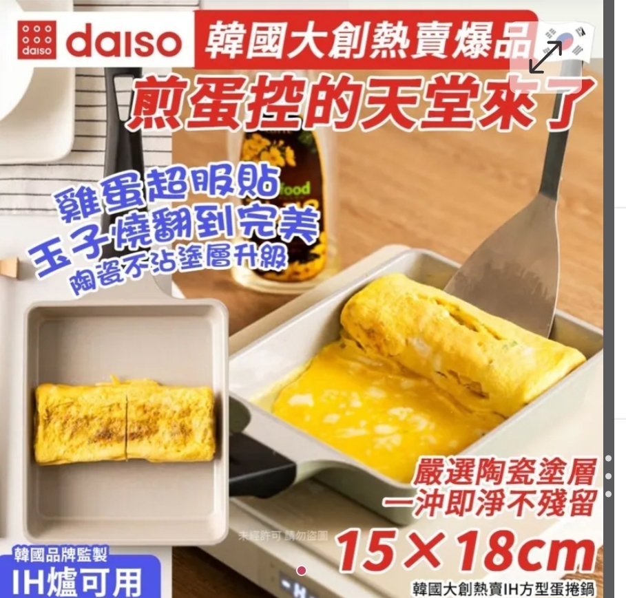 $68個.2個起$58個.韓國大創熱賣IH方型蛋捲鍋15×18cm