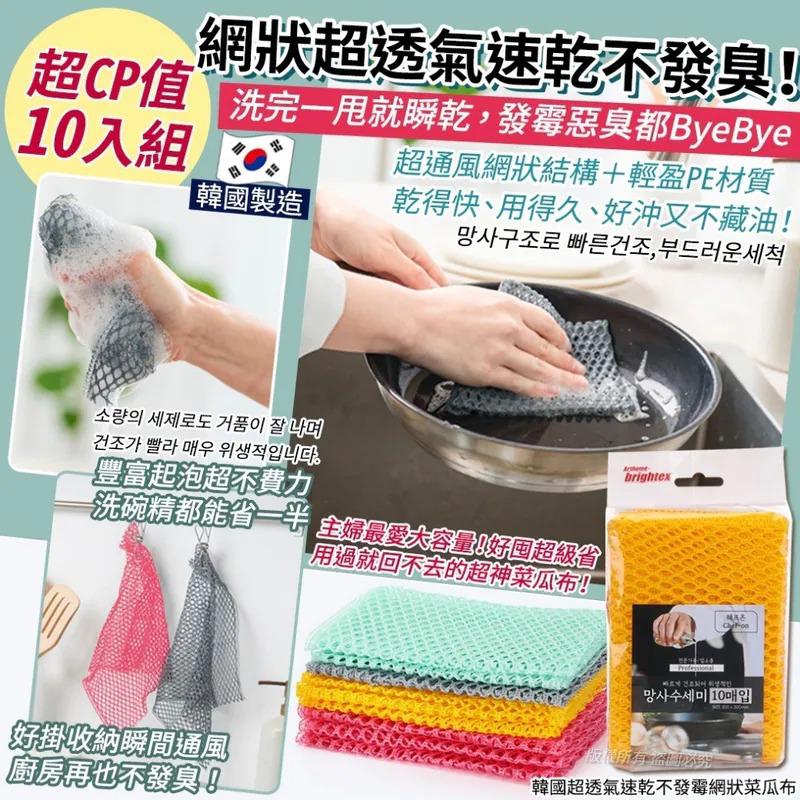 $68包10片。2包或以上:$58包.韓國超透氣速乾不發霉網狀菜瓜布 (1包10片)